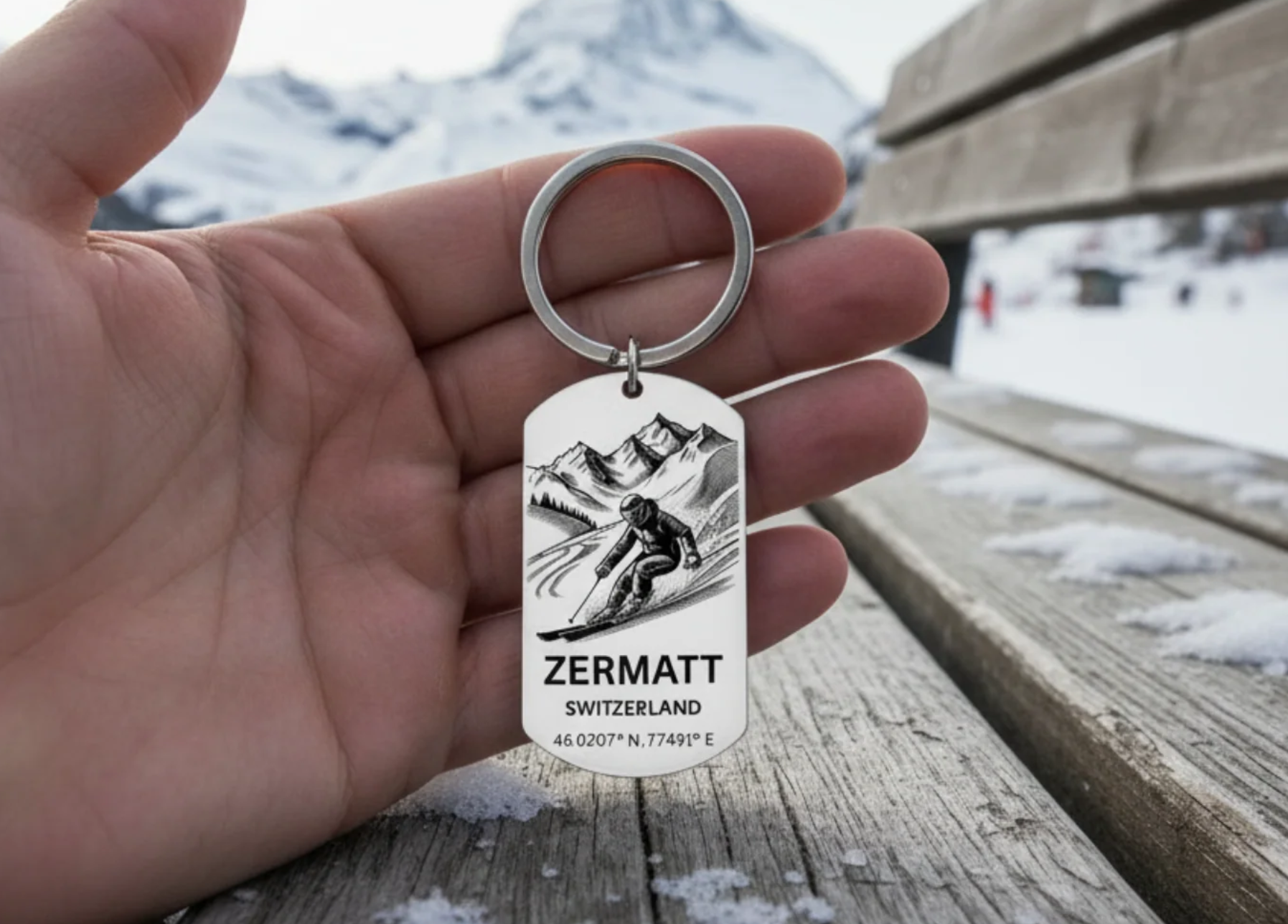Zermatt Skiing Keyring | Personalised Matterhorn Gift Swiss Alps UK