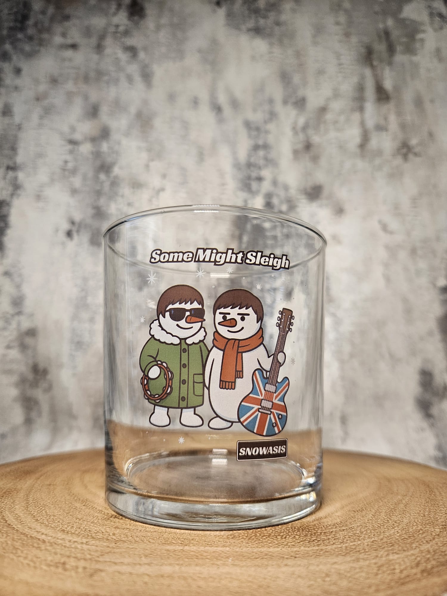 Bring a touch of Britpop humour to your Christmas with our Some Might Sleigh beer glass — featuring two cheeky snowmen inspired by the legendary Gallagher brothers from Oasis.