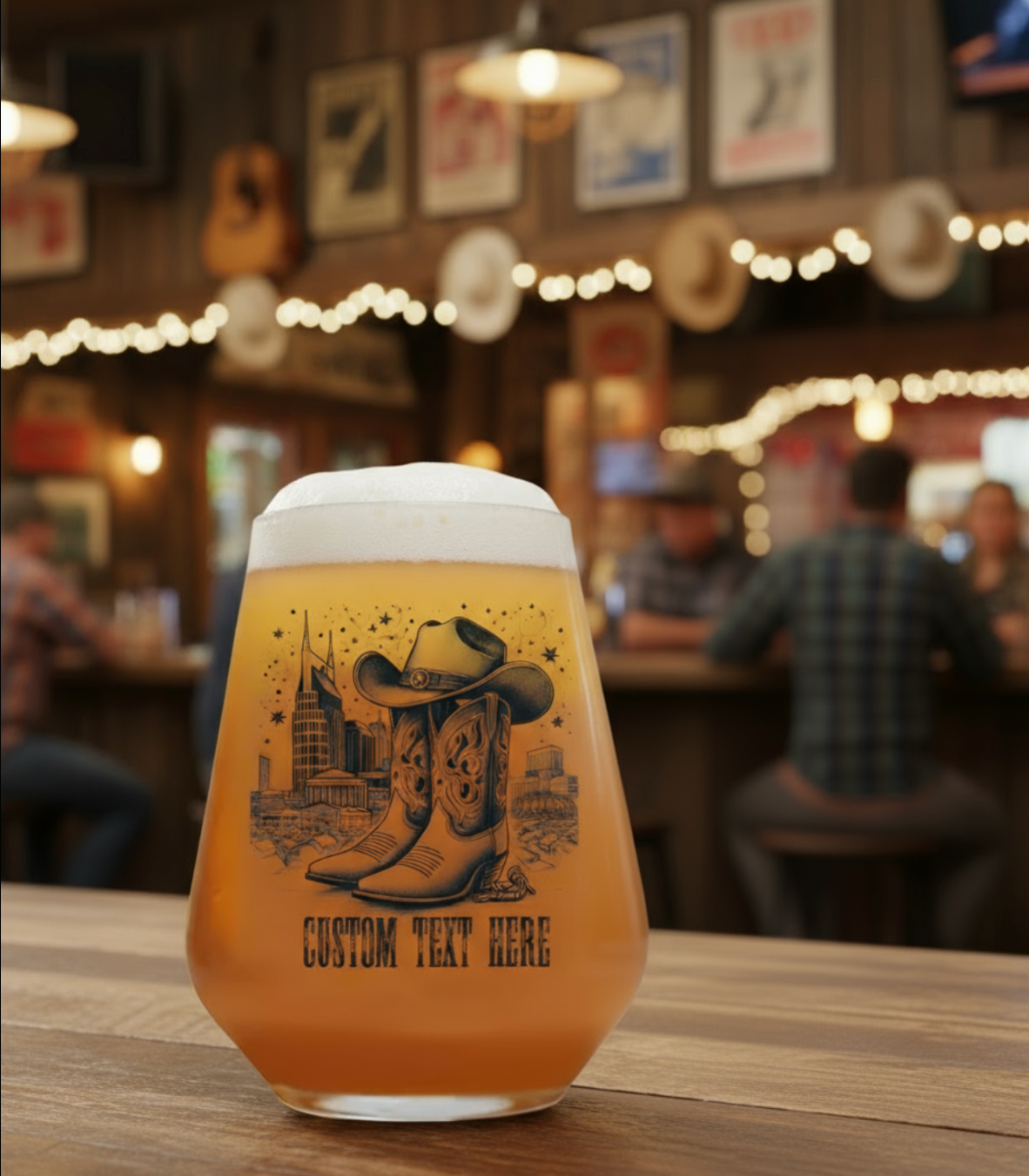 🎸 Personalised Nashville Skyline Country & Western Glass – Add Your Own Text