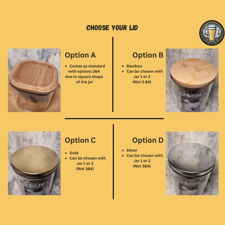 Please ensure you read the dimensions on the photo's and which lids you can choose to match your jar.
